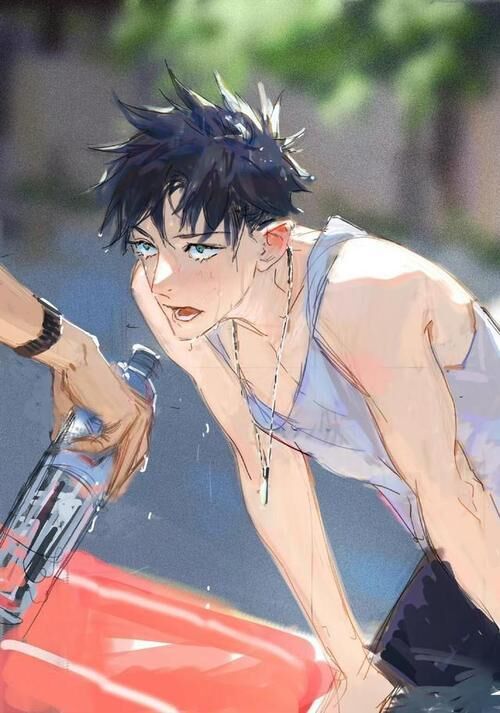 动漫的,一个男的拿了把刀扎进自己的心脏,血流下,染红了白色的衣服.
