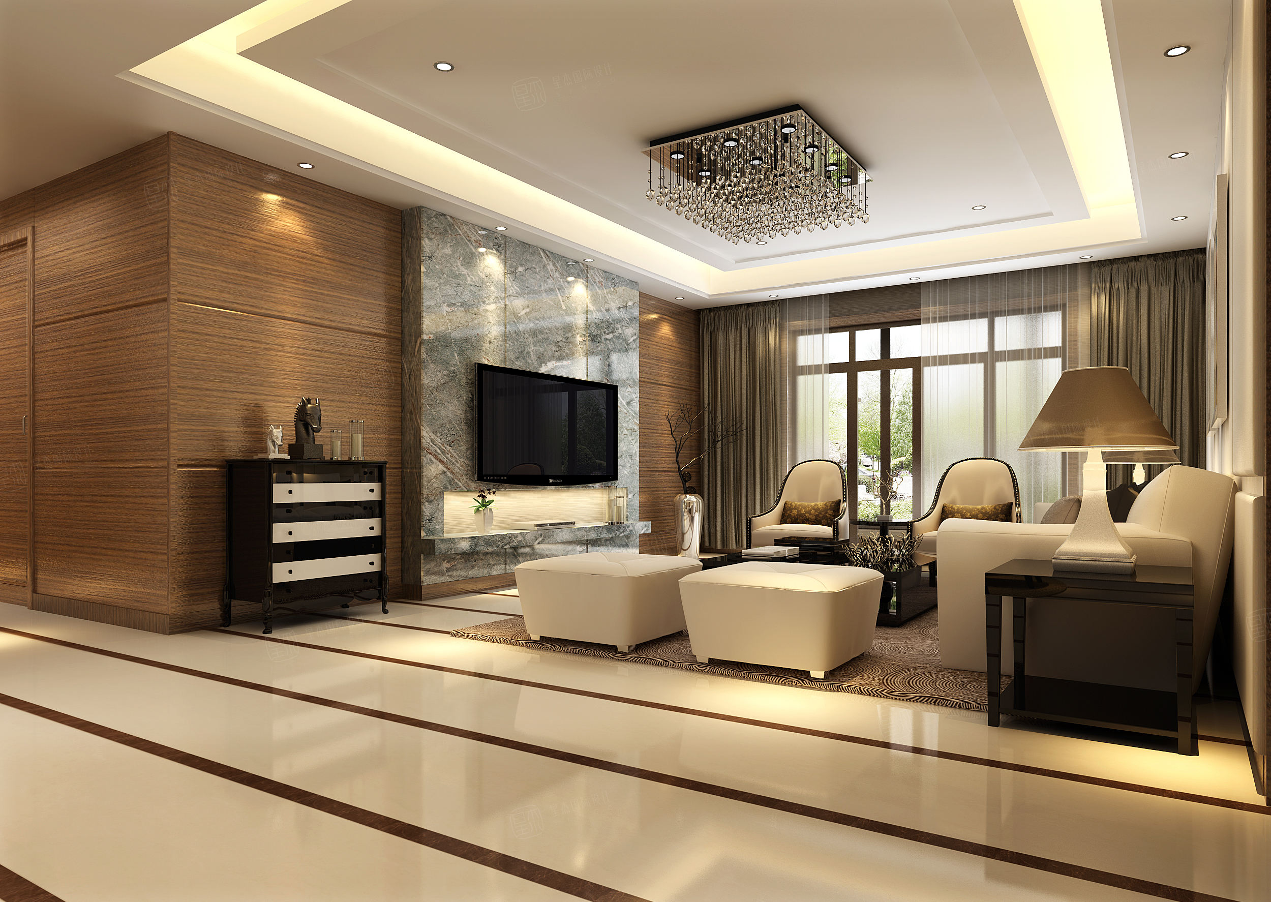 港式轻奢朱平波高端设计成都装修大平层客厅装修效果图片_装修美图