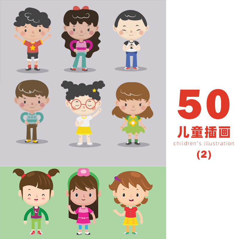 50款-儿童小朋友角色插画-2 ai矢量文件设计素材打包下载-403