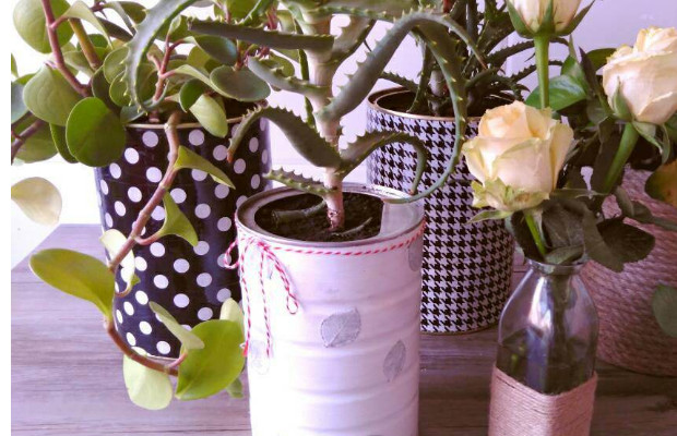 奶粉罐变小花盆【黑白波点小花盆】