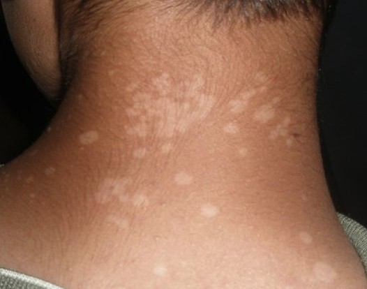 背部左肩部分出的斑,原来只有一小块,现在好多,谁知道这是什么斑?