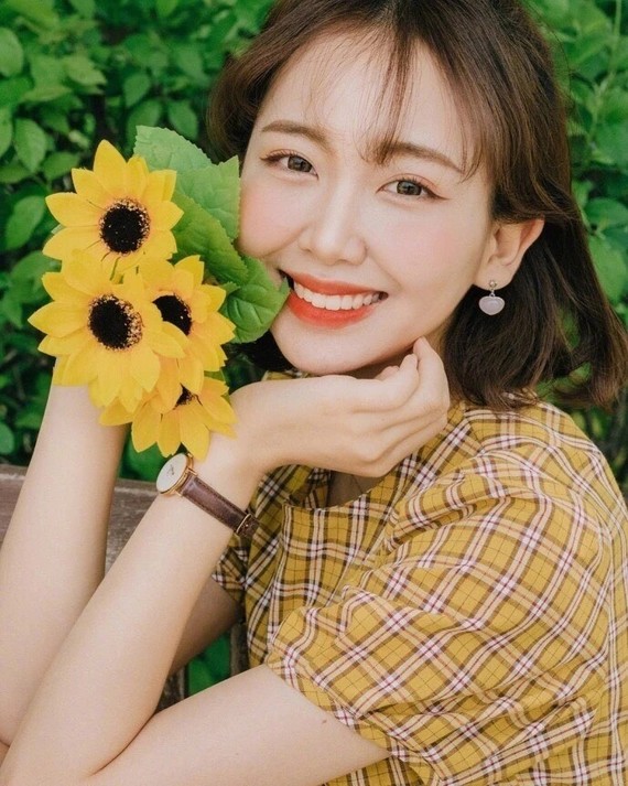 手持向日葵加上灿烂的笑容