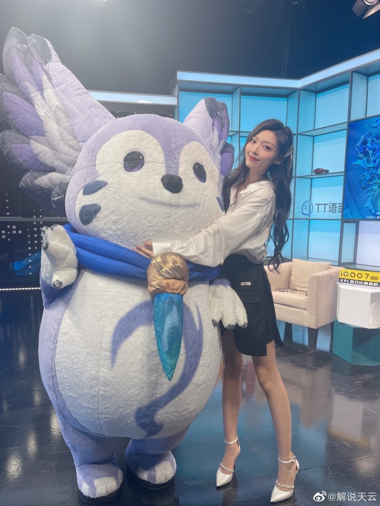 解说天云晒照蓝色性感辣妹装显身材五男一女共同比yeah