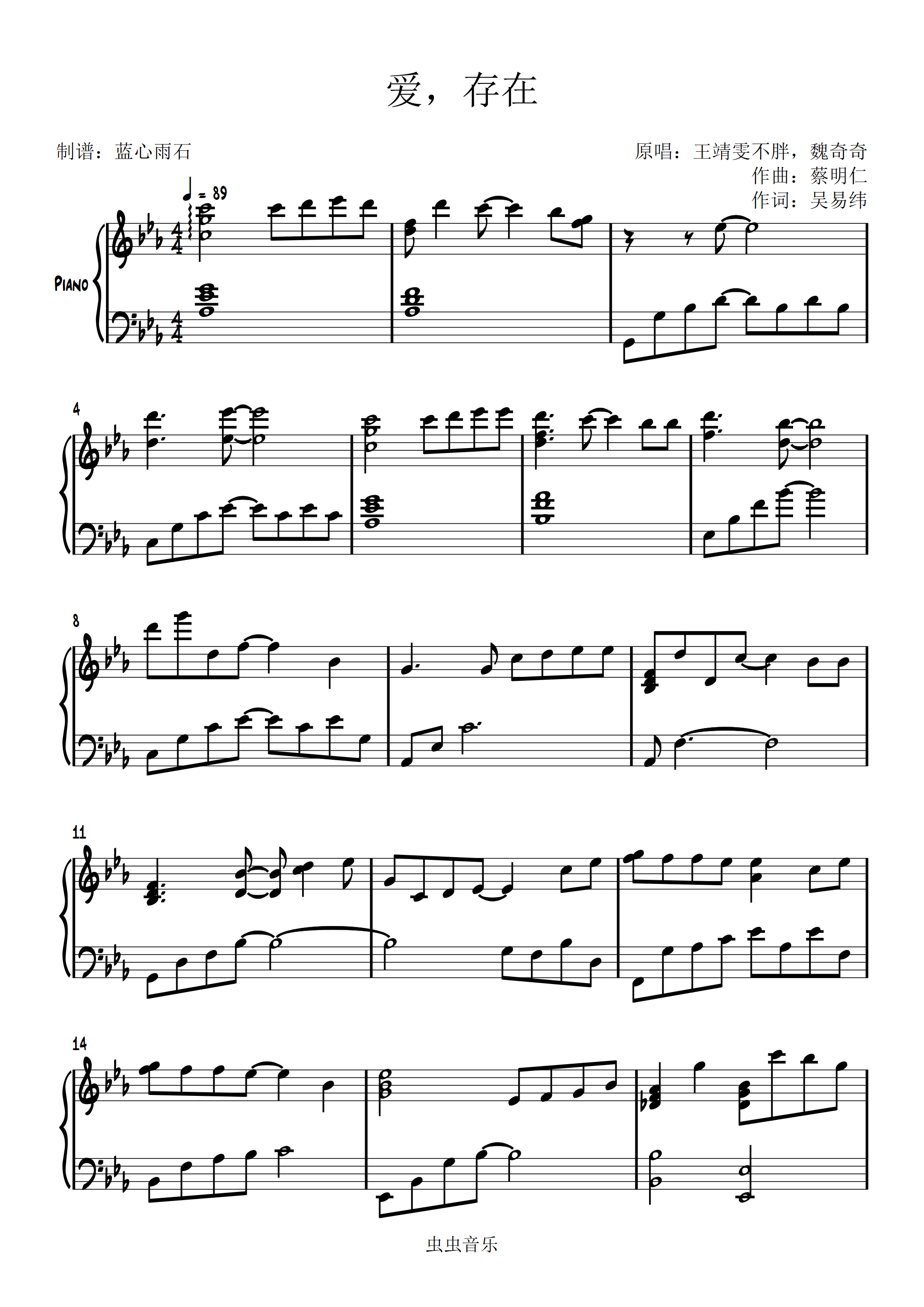爱,存在钢琴谱-蓝心雨石-虫虫钢琴