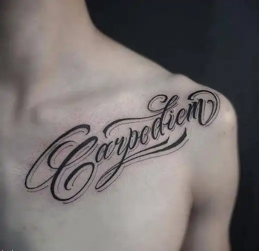 小图字母纹身图片_胸部欧美写实几何纹身图案