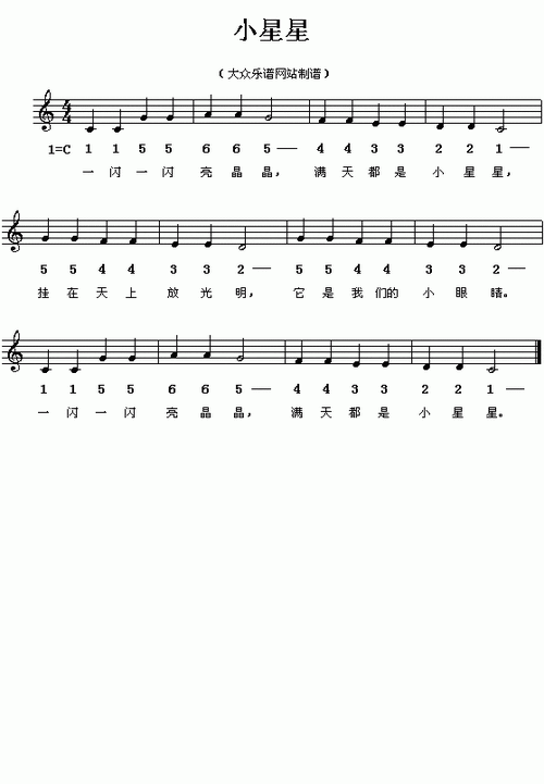 小星星_简谱_搜谱网