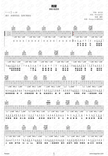 吉他谱 #雨爱 #杨丞琳 - 抖音