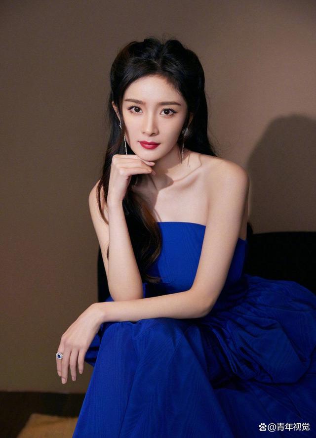 杨幂蓝色晚礼服出席节目(一袭蓝色礼服显得她格外的高贵优雅)