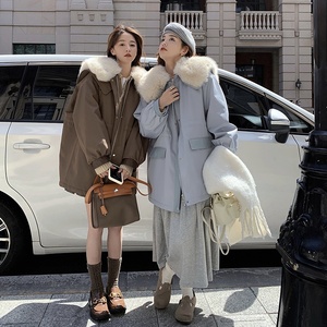 女装冬装2019新款羊羔毛拼接外套姐妹装棉服女韩版宽松闺蜜装学生