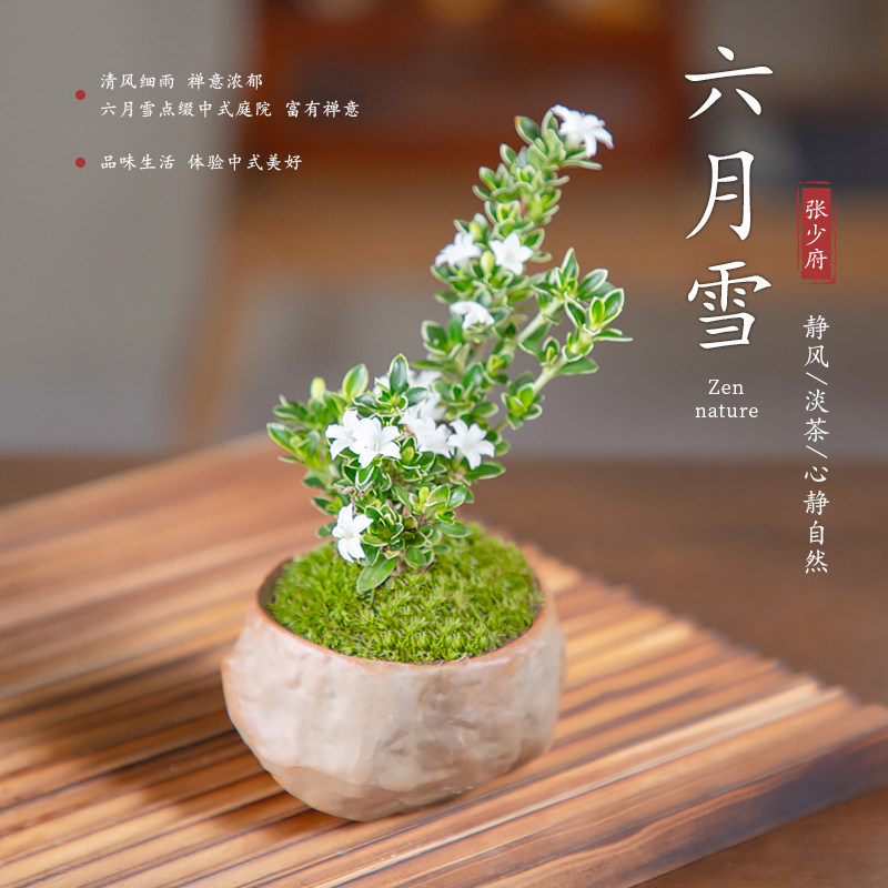 垂枝悬崖六月雪盆景茶桌禅意室内窗台小绿植物办公室茶几桌面盆栽