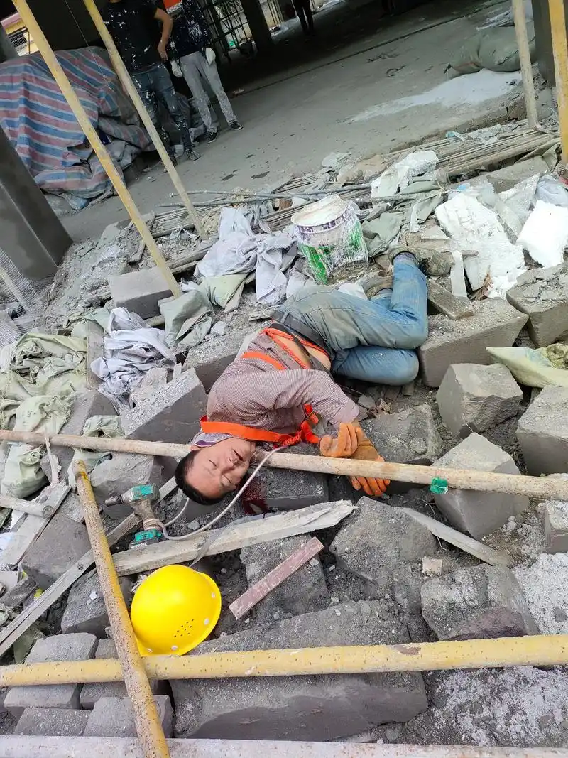 深圳一建筑工人从高处摔下 身体被钢筋贯穿现场组图