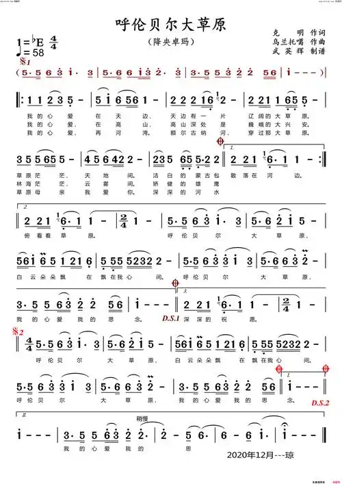 呼伦贝尔大草原(克明词 乌兰托嘎曲,6个版本)简谱 - 曲谱歌词网