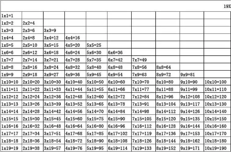 19x19乘法表