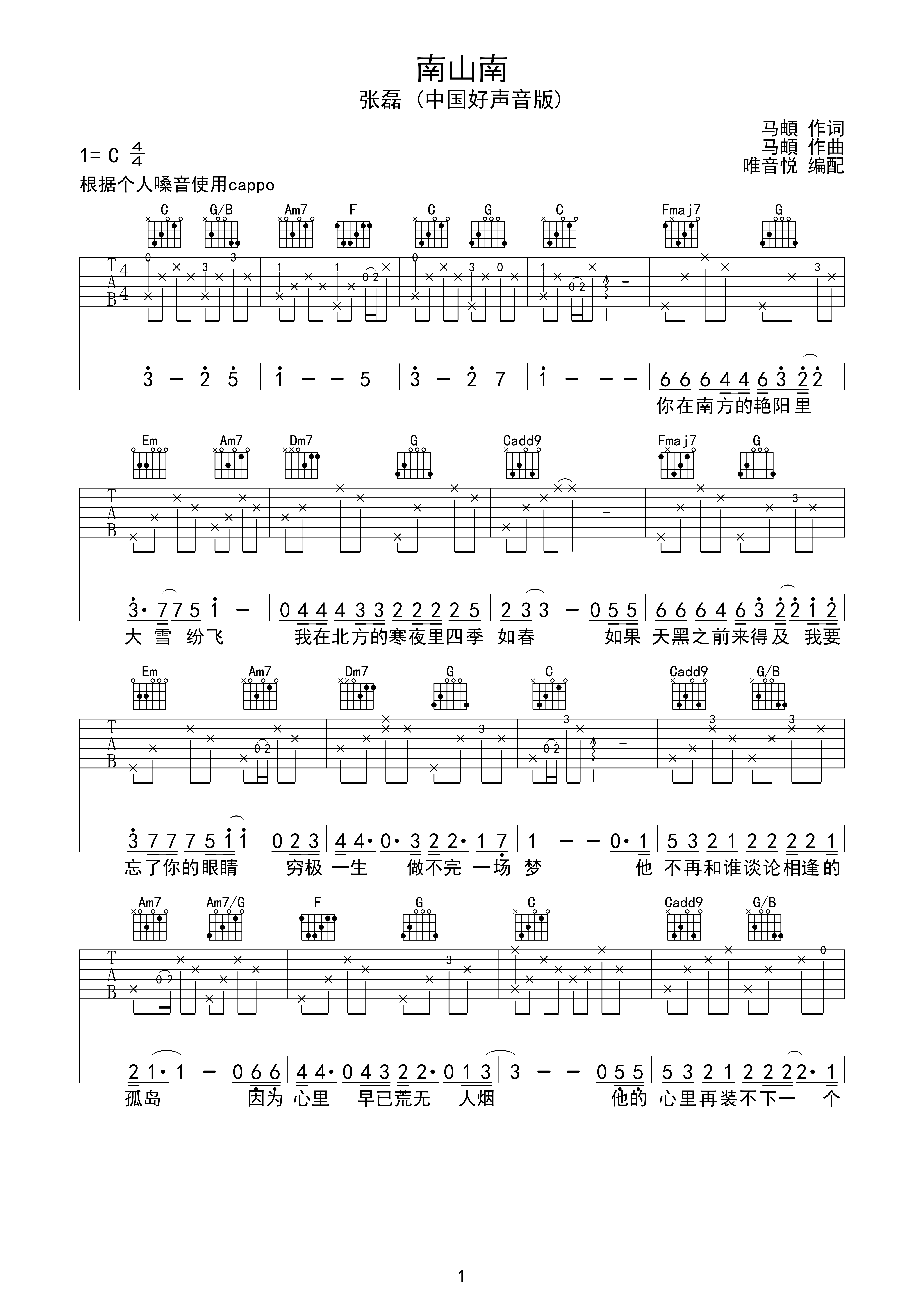 南山南c调六线pdf谱吉他谱-虫虫吉他谱免费下载