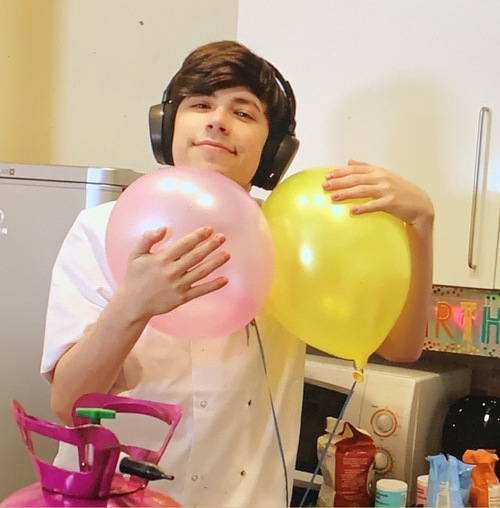 看着george 抱着气球,他.