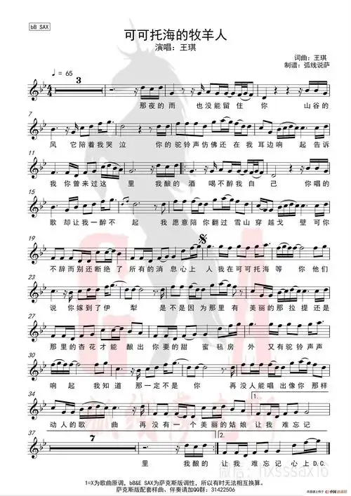 可可托海牧羊人 (简谱&萨克斯五线谱) 谱友园地