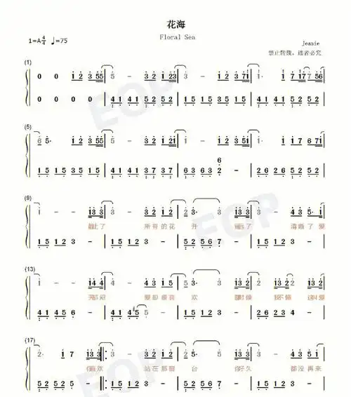 花海-周杰伦双手简谱预览1-钢琴谱文件(五线谱,双手简谱,数字谱,midi