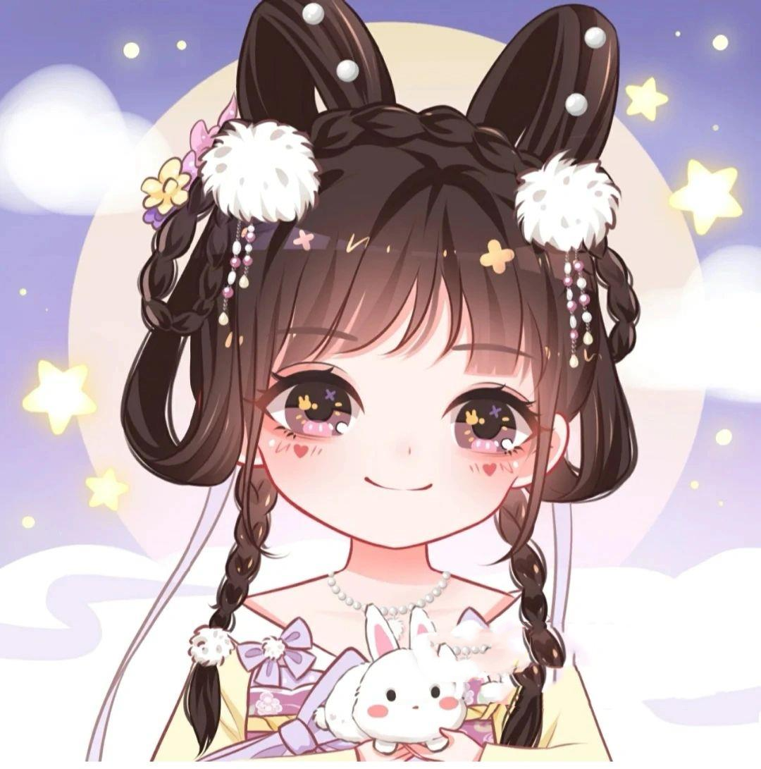 卡通q版可爱女生头像/中秋古风,嫦娥玉兔 兔兔画上了,图二没有兔兔,图