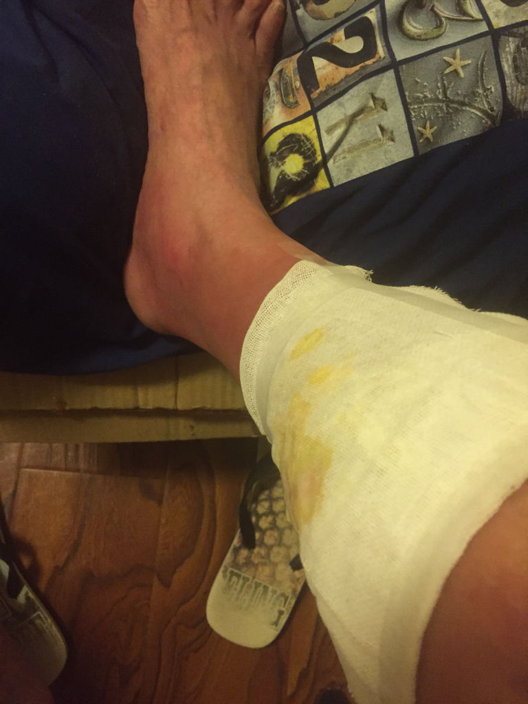 伤口有点大,现第3天小腿受伤附近有黄色的水流出!
