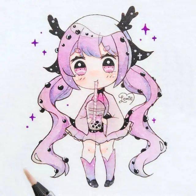动漫女生 #卡通画# #马克笔# #动漫# #q版动漫女生