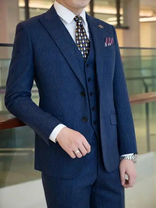 藏蓝色针线条纹西装