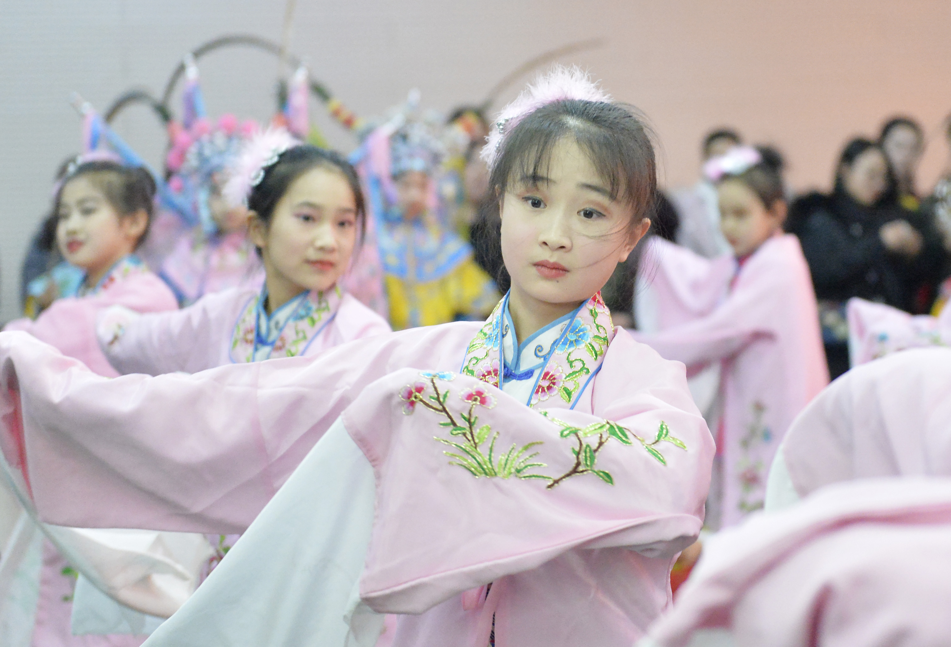 来自该中心少儿京剧团的40名小演员先后表演了《梨花颂》《大青衣》