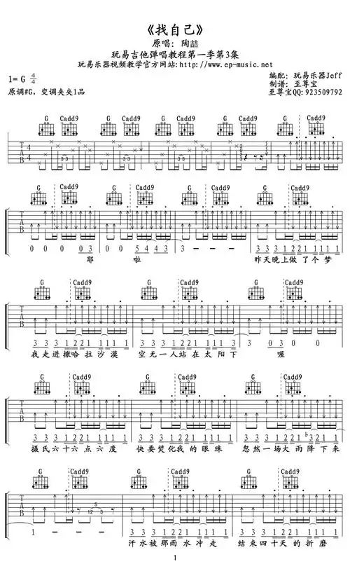找自己吉他谱陶喆g调高清弹唱谱