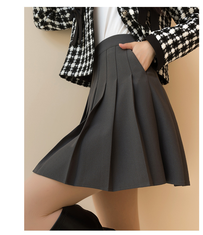 毛呢口袋款式百褶裙卡其色裙子女半身裙短裙秋冬高腰学生a字裙 - 17网