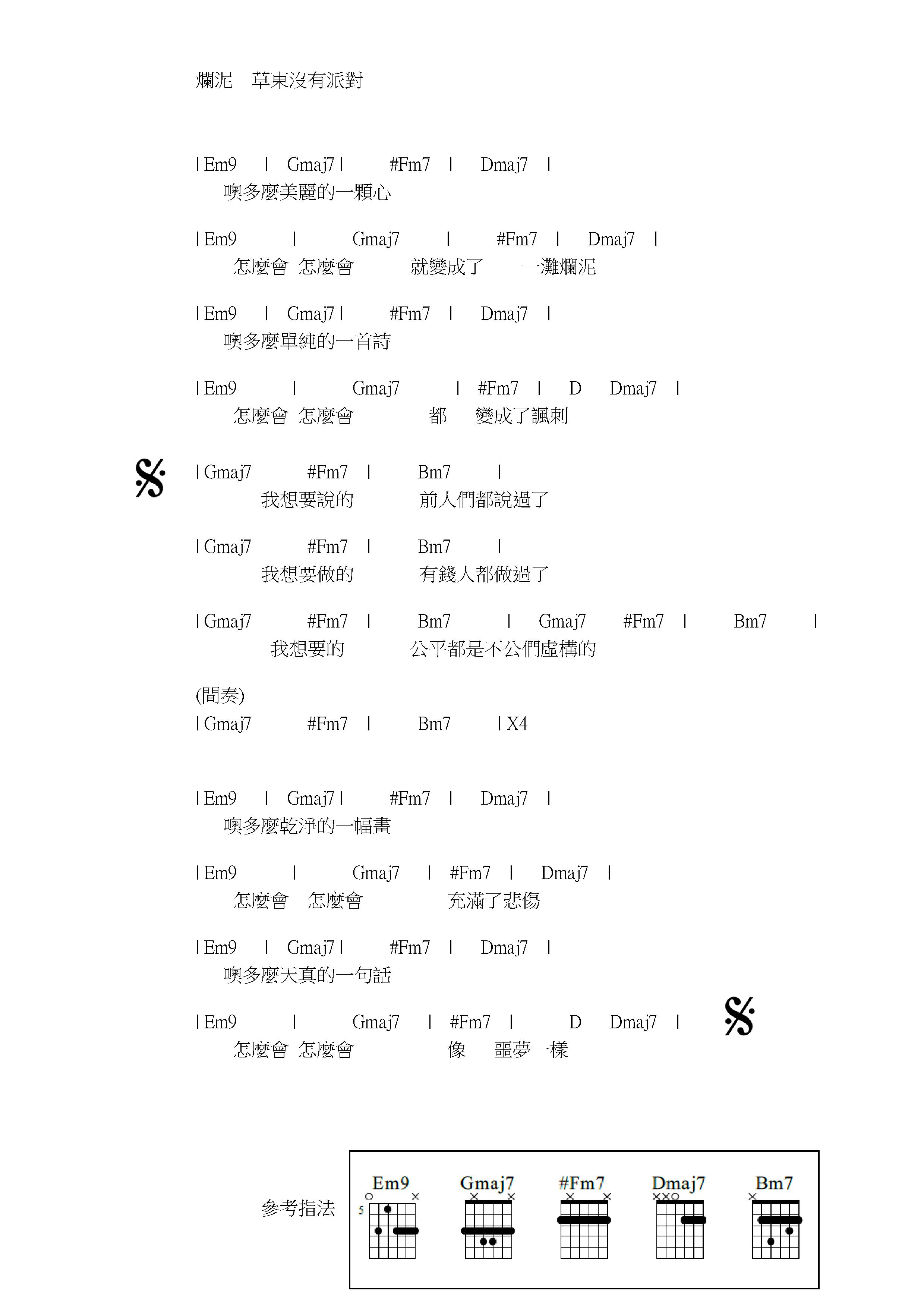 烂泥 c调指法编配(吉他谱)1