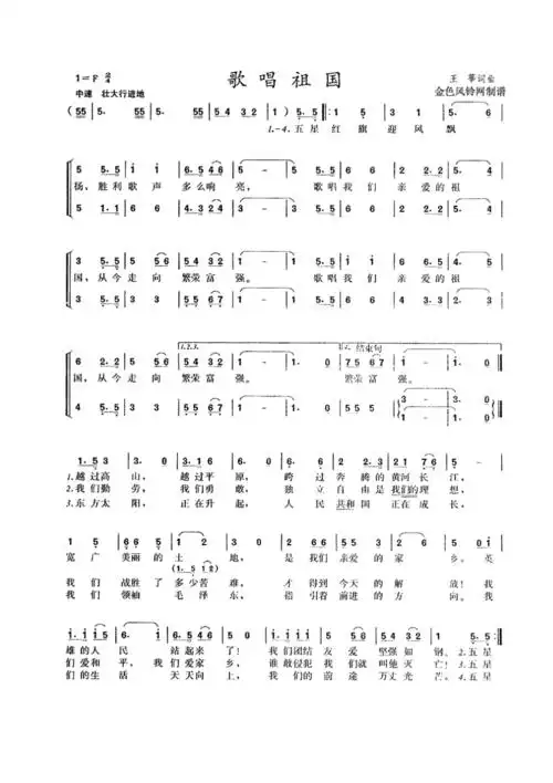 歌唱祖国(祖国颂歌100首) 歌谱简谱网
