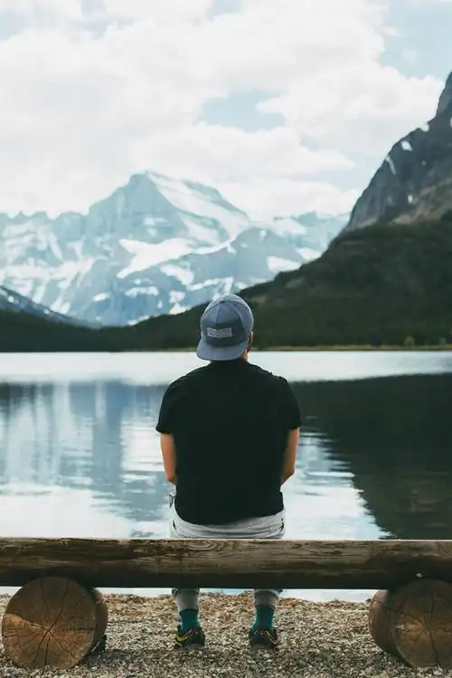 湖面湖水男人男人背影男人背部走廊自然风景风景