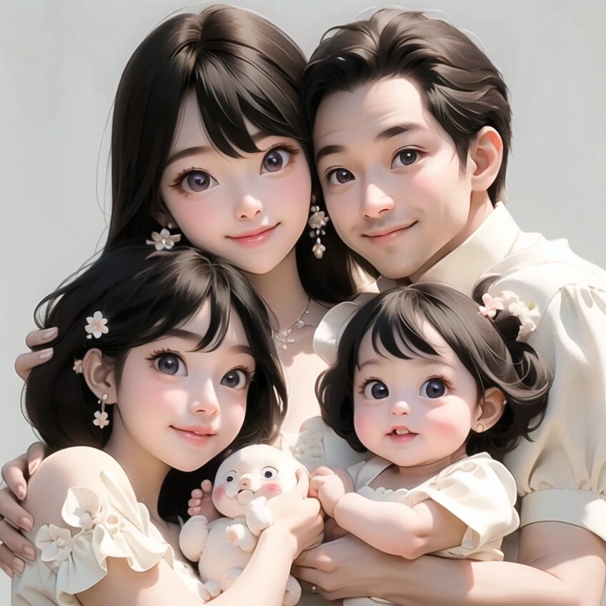 亲子头像|一家四口两女儿专属头像设计