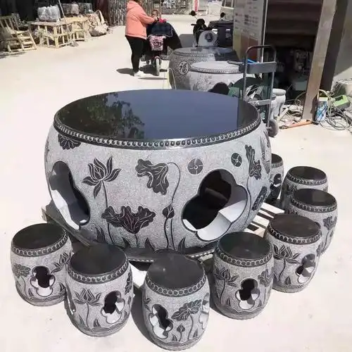 石雕石桌石凳仿古花岗岩大理石庭院户外花园别墅方桌圆桌石桌定制