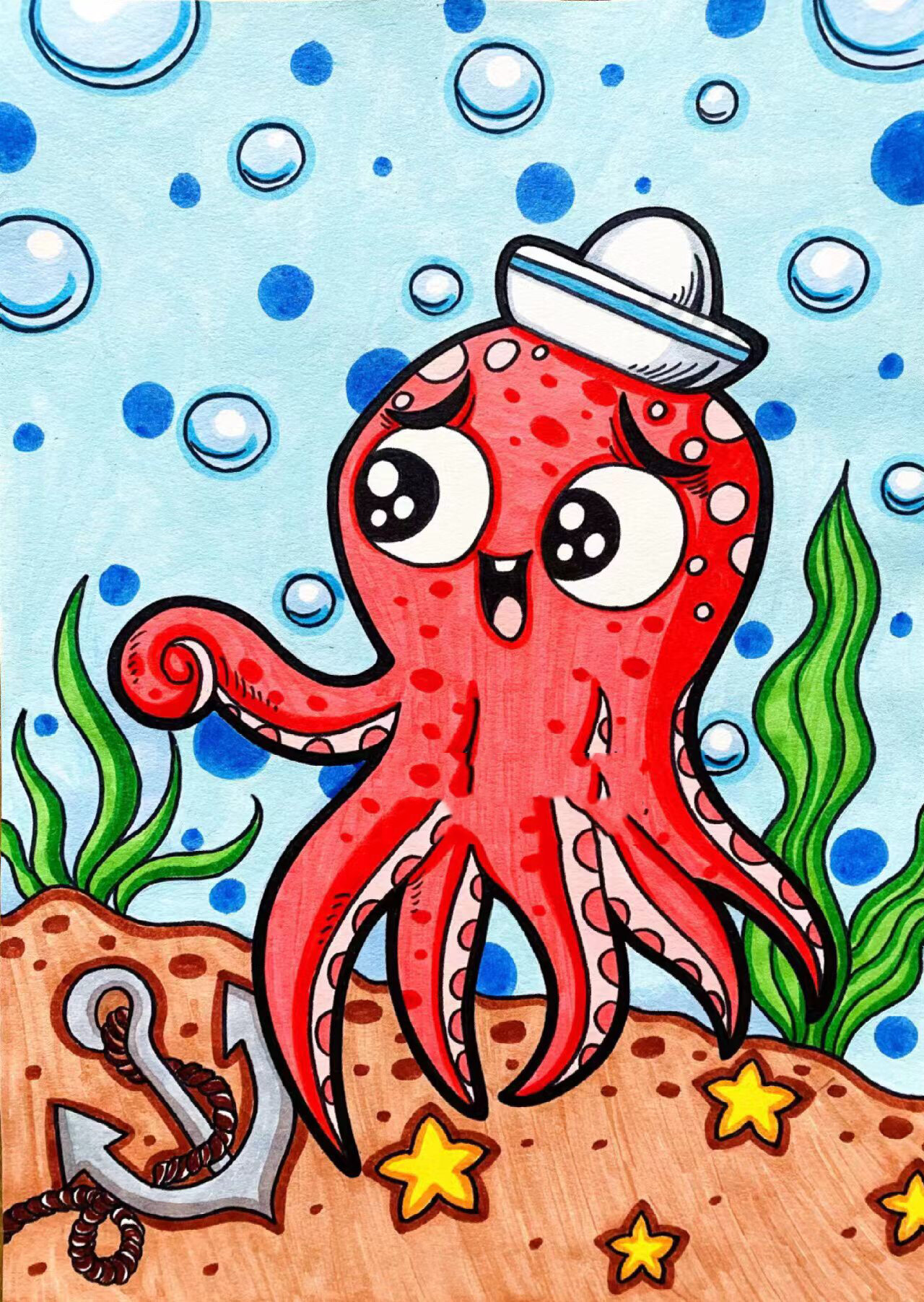 《八爪鱼》少儿美术 创意儿童画简笔画 附线稿