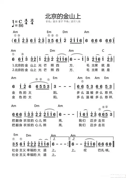 北京的金山上简谱