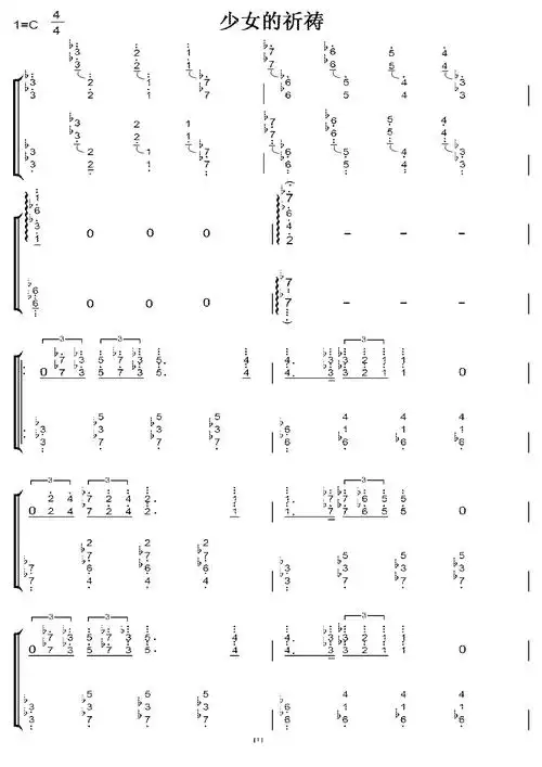 少女的祈祷 c调 初学者简易版 钢五双手简谱 钢琴谱