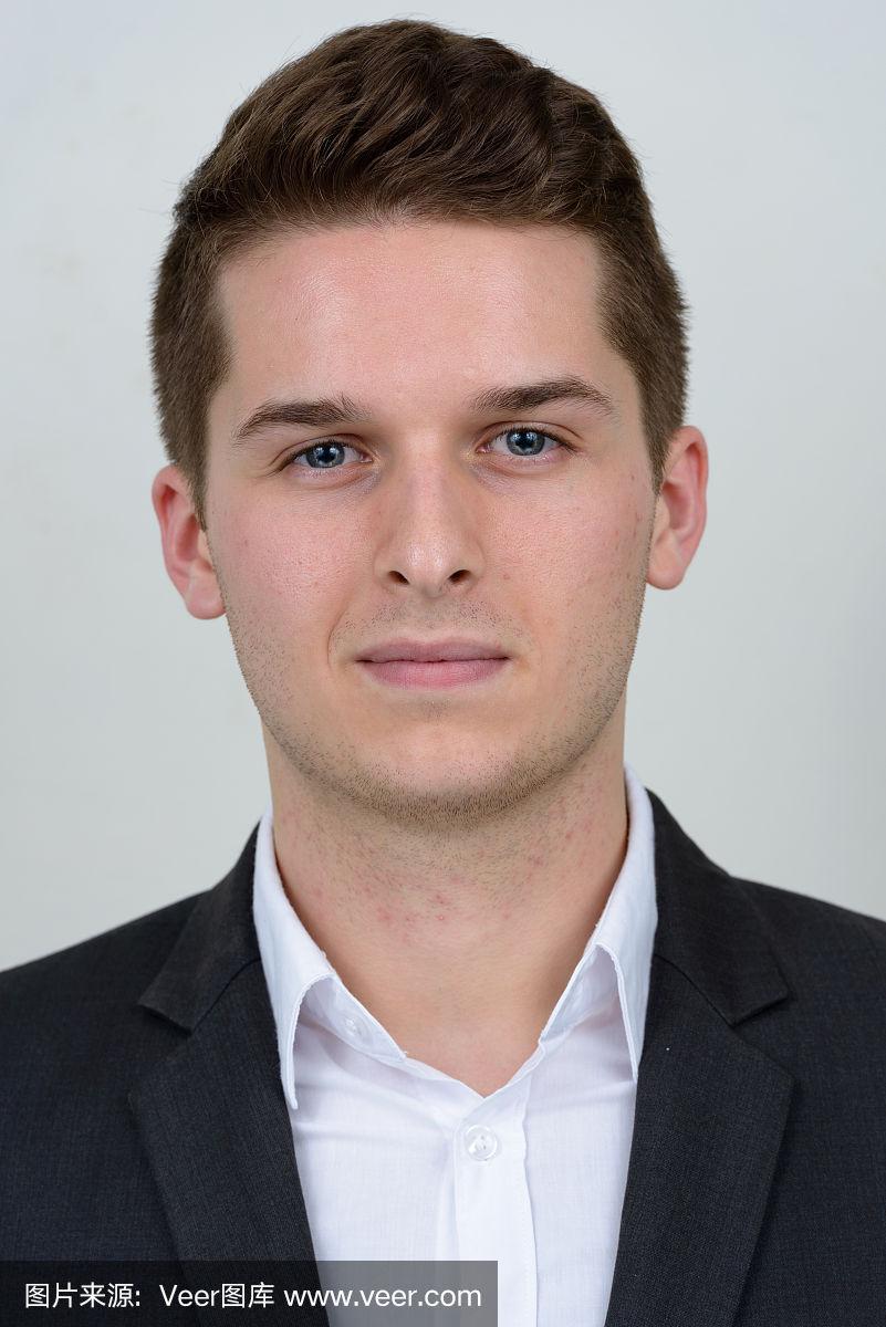 西装证件西装革履的商人在白色背景上看着摄像机,与世隔绝照片