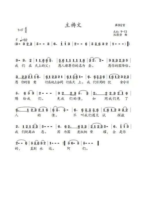 主祷文(简谱)_经文诗歌_基督教歌谱大全