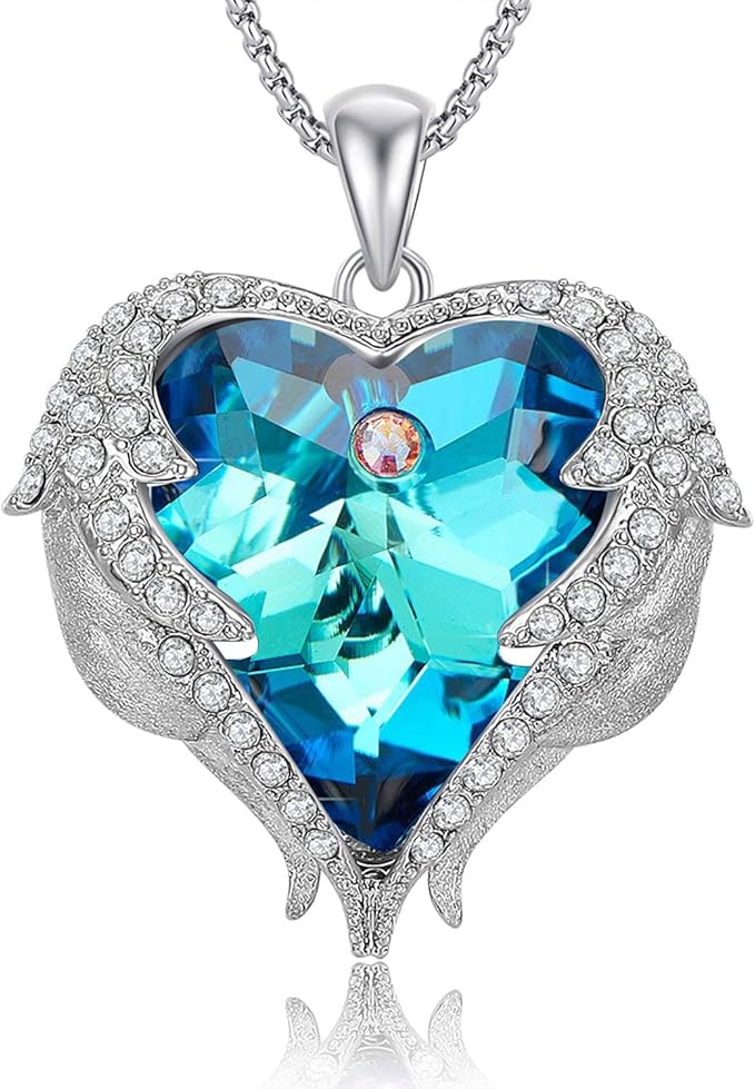 caperci 天使之翼心形施华洛世奇水晶吊坠项链 - 浪漫情人节首饰送给