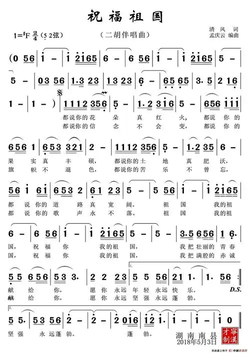 祝福祖国 曲谱