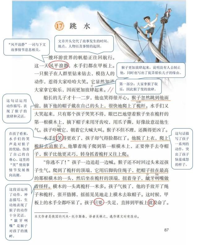 17 跳水课文内容_人教版五年级语文下册(部编版)电子课本_我要100分