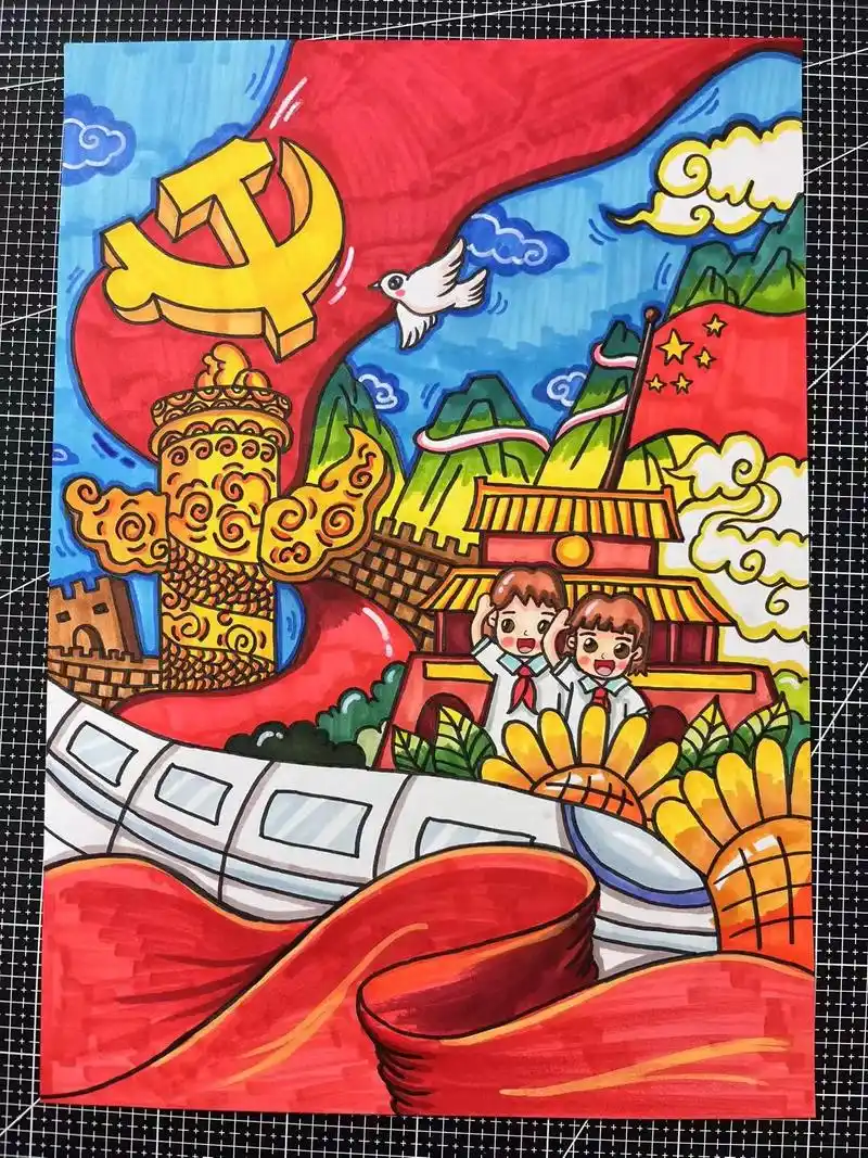 原创爱国爱党主题绘画 原创.适用于a4/8k/a3/4k纸 - 抖音