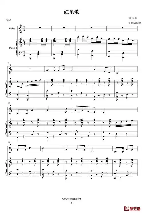 红星歌钢琴谱_傅庚辰_闪闪的红星主题曲