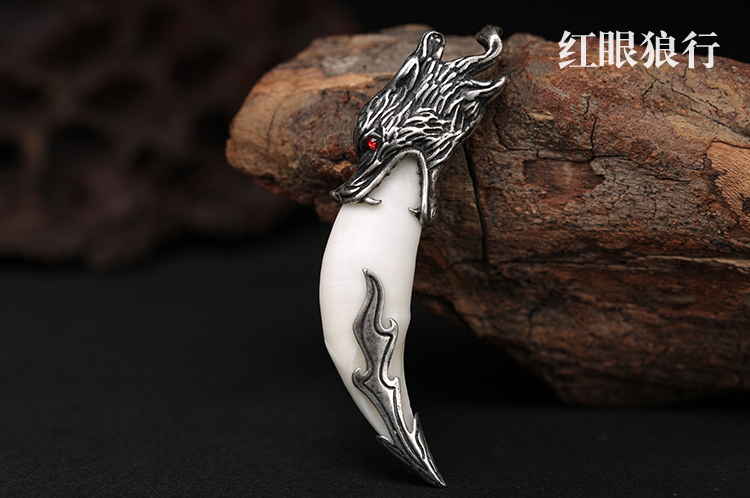 狼牙黑狗牙吊坠项链真藏獒牙齿狼牙形男女时尚挂件本命年个性饰品红眼