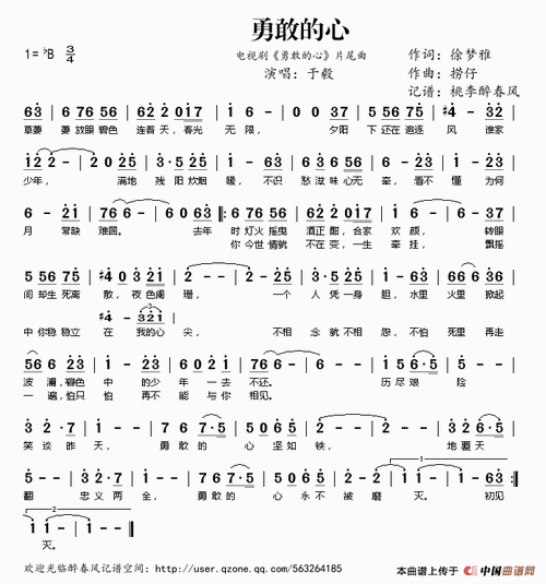 勇敢的心简谱(歌词)_于毅演唱_电视剧《勇敢的心》片尾曲