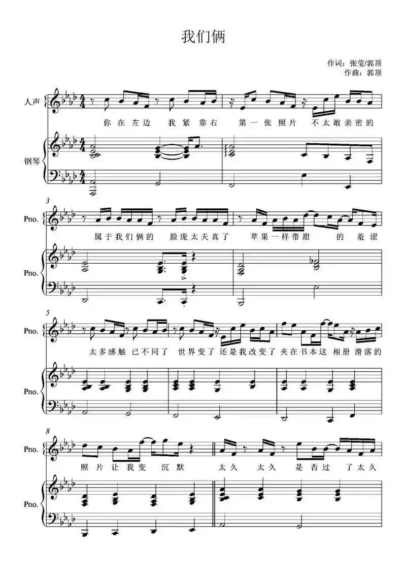 《我们俩》钢琴弹唱谱 #钢琴谱 #钢琴伴奏 #我们俩 #郭顶 - 抖音