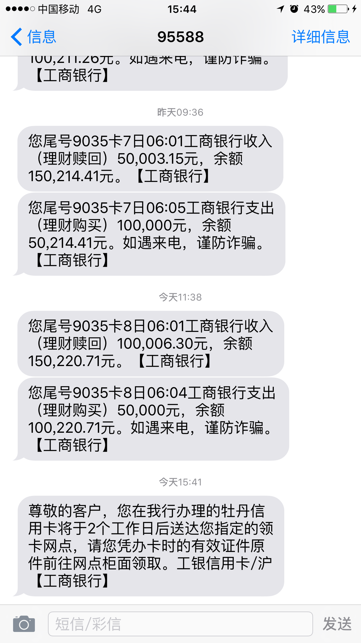 收到短信了 - 工商银行讨论区 - 我爱卡论坛