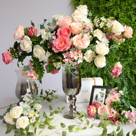 包邮仿真5头角玫瑰花多层花瓣居家酒店花摆婚庆插花婚礼花饰路引