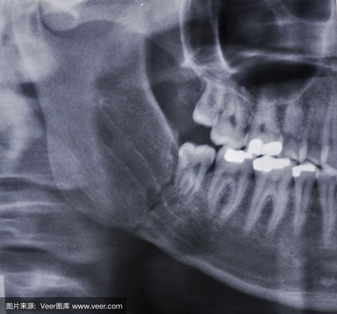 颅骨x线图像显示下颌骨骨折