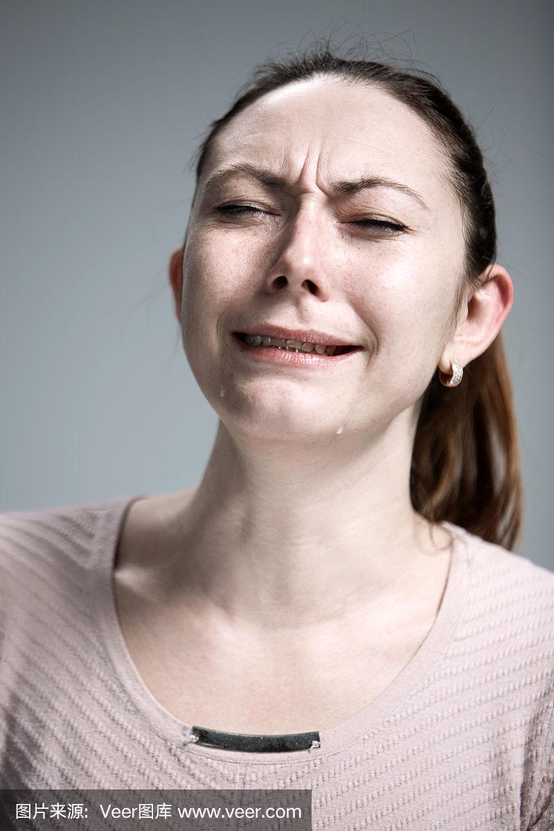 特写镜头是脸上流泪的女人